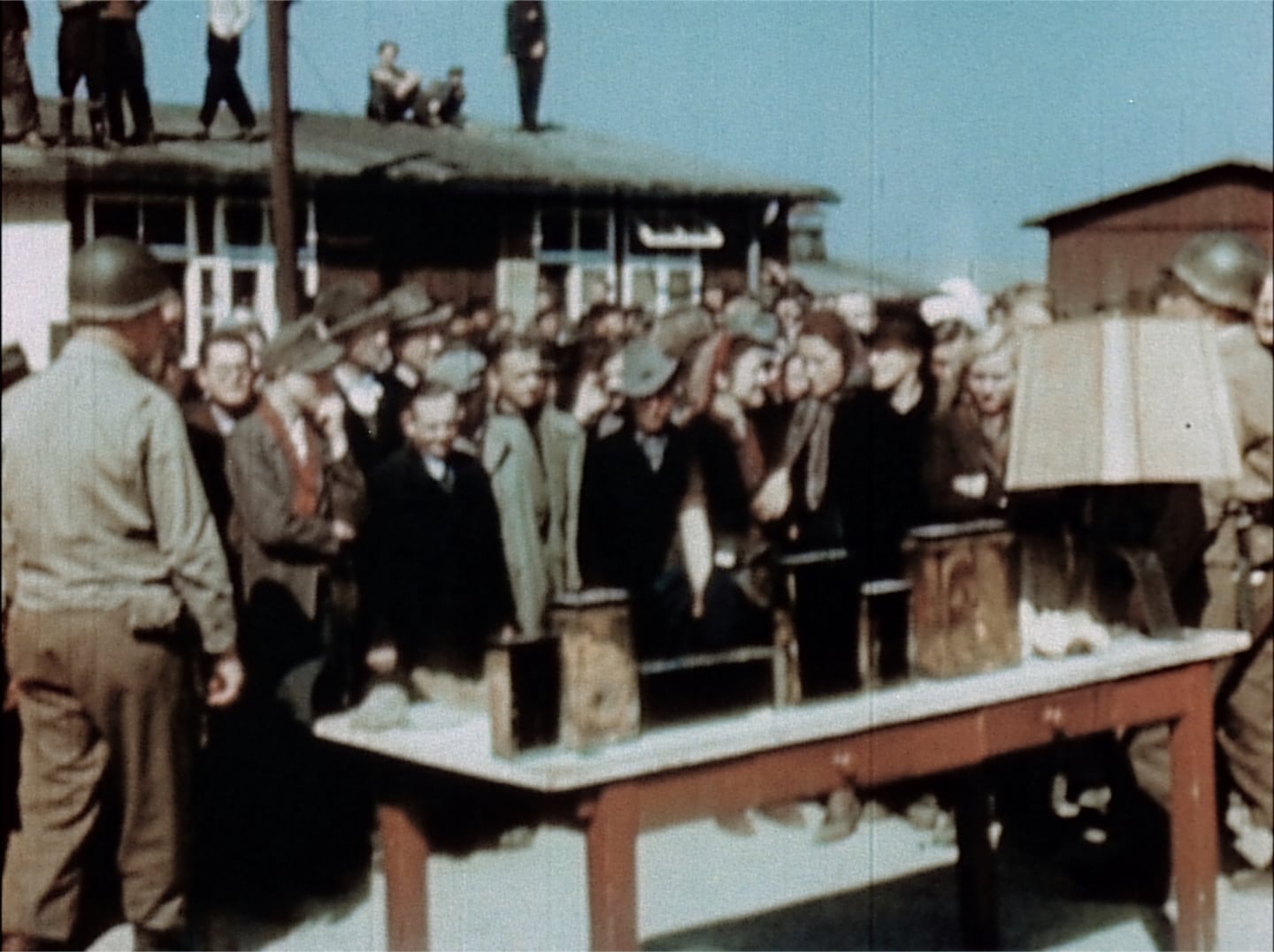 Es ist ein sonniger und warmer Frühlingstag. Am 16. April 1945 werden Weimarer Bürger werden in das nur 10 Kilometer entfernte KZ geführt, um ihnen den unmenschlichen Horror des Nazi Regimes vorzuführen. Die Aufnahmen werden von einem amerikanischen Filmteam des „Special Film Project“ von William Wyler gedreht. Die Aufnahmen sind leider nicht in einem besonders guten Zustand erhalten. Der spätere amerikanische Präsident General Dwight D. Eisenhower schreibt über den Hintergrund der Aktion: